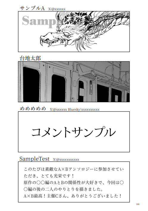 コメントカットページの出力イメージ